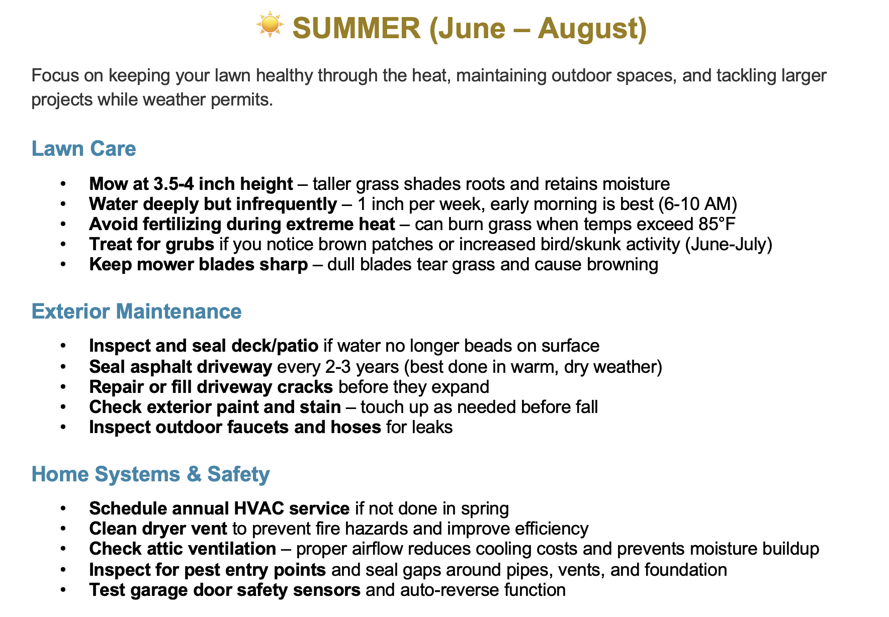 Keeping your home well-maintained protects your investment and helps our entire community look its best. This guide provides seasonal reminders and practical tips tailored to Central Ohio's climate. Use it as a handy reference throughout the year to stay ahead of maintenance tasks.